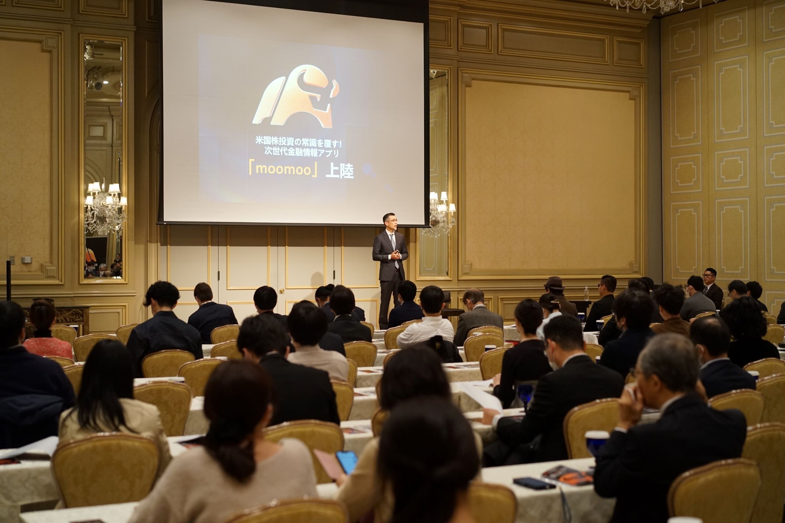 ナスダック上場企業Futu Holdings Limitedのグループ企業であるmoomoo証券株式会社(本社:東京都中央区 代表取締役社長:伊澤フランシスコ)は、2022年12月3日(土)、moomooアプリの提供開始イベントを開催いたしました。イベント会場である「ホテル椿山荘東京 ボールルーム」には、金融業界を代表する著名人や、マスコミ関係者など120名が来場し賑わいを見せました。