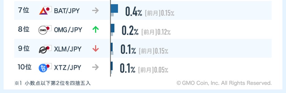 「暗号資産FX」では、ビットコイン(BTC)/JPYがシェア69.1%で1位となりました。