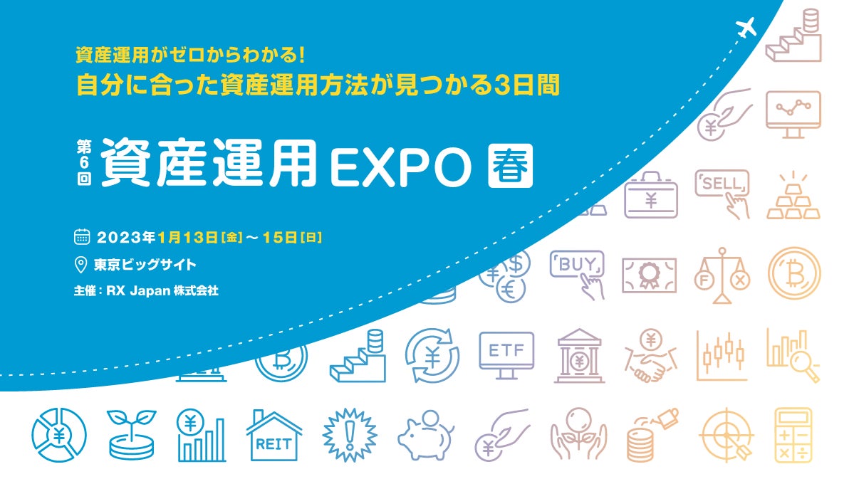 日本最大の見本市主催会社 RX Japan株式会社 (本社:東京都新宿区、代表取締役社長:田中岳志)は、2023年1月13日(金)~15日(日)の3日間、東京ビッグサイトにて「第6回 資産運用EXPO【春】」を開催します。