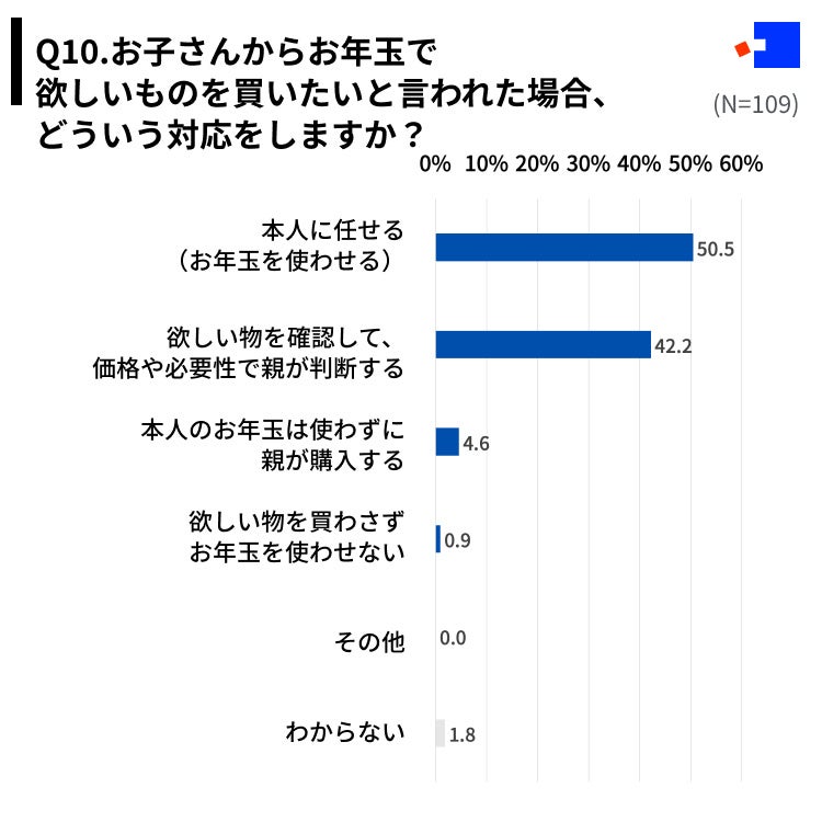 Q10.お子さんからお年玉で欲しいものを買いたいと言われた場合、どういう対応をしますか?(Q4で「ある」と回答した人のみ、N=109)