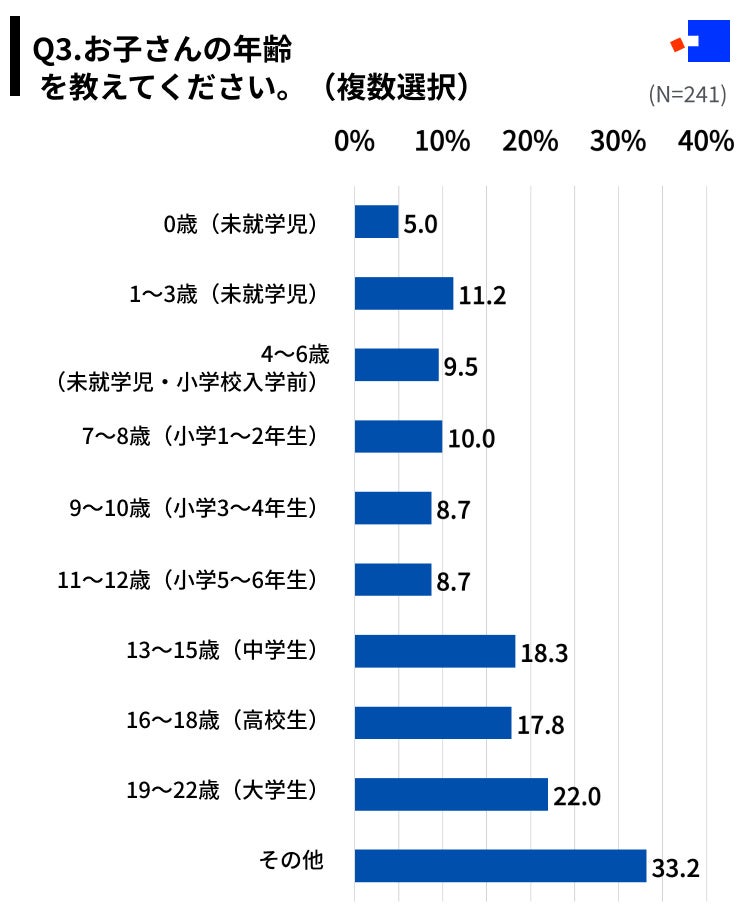 調査期間は2022年12月9日の1日間で、お子さんがいる、全国の20歳〜59歳までの男女を対象に、インターネットリサーチを実施し、241名の有効回答を集計しました。