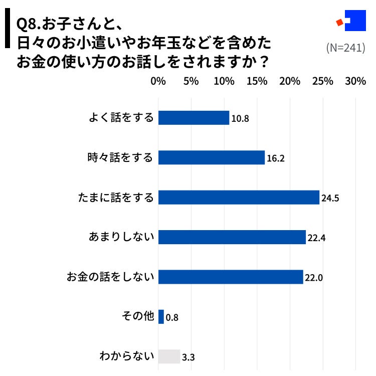 Q8.お子さんと、日々のお小遣いやお年玉などを含めたお金の使い方のお話しをされますか?(N=241)