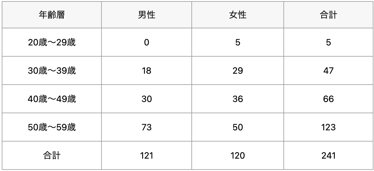 当アンケート調査の回答者は13歳以上のお子さんがいらっしゃる方が多いようです。Q2の設問の結果と総合すると、兄弟姉妹で、成人のお子さんがいらっしゃる方が多いことがうかがわれます。
