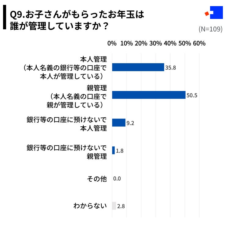 Q9.お子さんがもらったお年玉は誰が管理していますか?(Q4で「ある」と回答した人のみ、N=109)