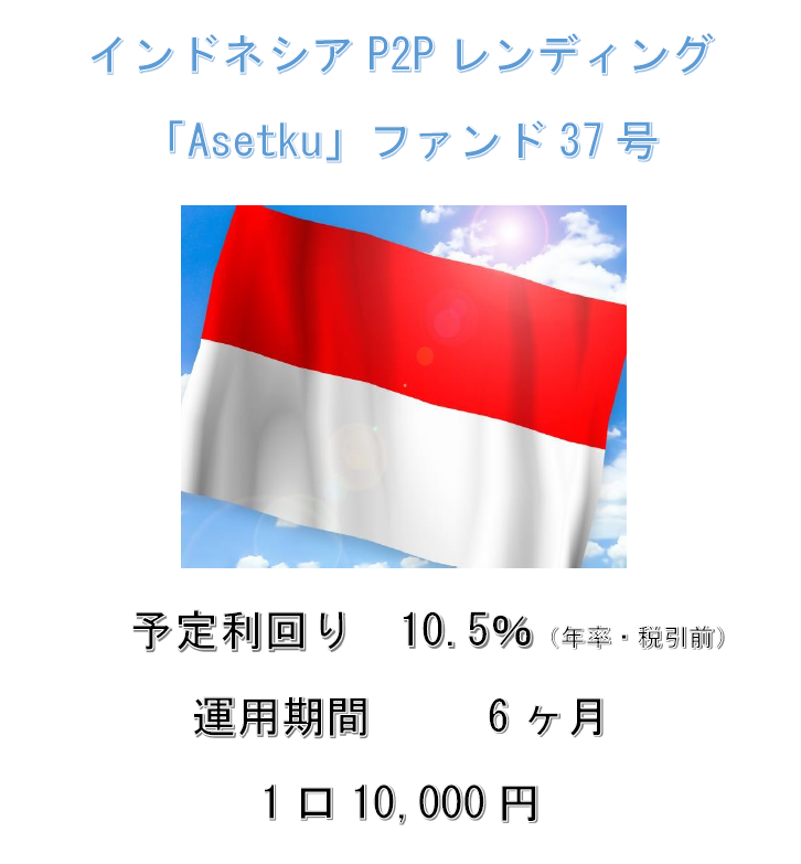 サン・キャピタル・マネジメント株式会社(大阪市中央区、代表取締役社長:前田利和)が運営するソーシャルレンディングサービス「アンシンバンク」は、本日15:00よりインドネシアP2Pレンディング「Asetku」ファンド37号の募集を開始いたします。