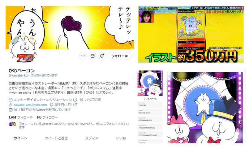 にゃっちーず(Nyathees)は日本のイラストレーター/漫画家 かわべーコン氏が生み出した人気キャラクターです。LINEにて配信しているLINEスタンプは500万ダウンロードを超えています。OVO.SPACEは2021年7月ごろの設立とともに、にゃっちーずのコレクタブルNFTシリーズ第1弾をリリースしました。