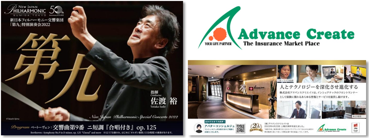 株式会社アドバンスクリエイト(本社:大阪府大阪市、代表取締役社長:濱田 佳治、東証プライム・福証・札証、証券コード:8798、以下「当社」、https://www.advancecreate.co.jp/ )は、当社のCSR活動の一環として協賛している新日本フィルハーモニー交響楽団「第九」特別演奏会が、2022年12月20日に実施されましたことをお知らせいたします。
