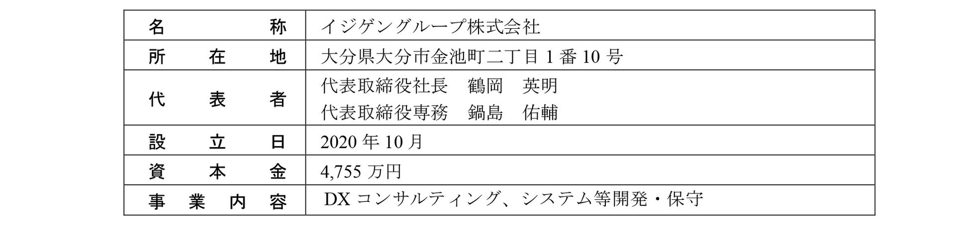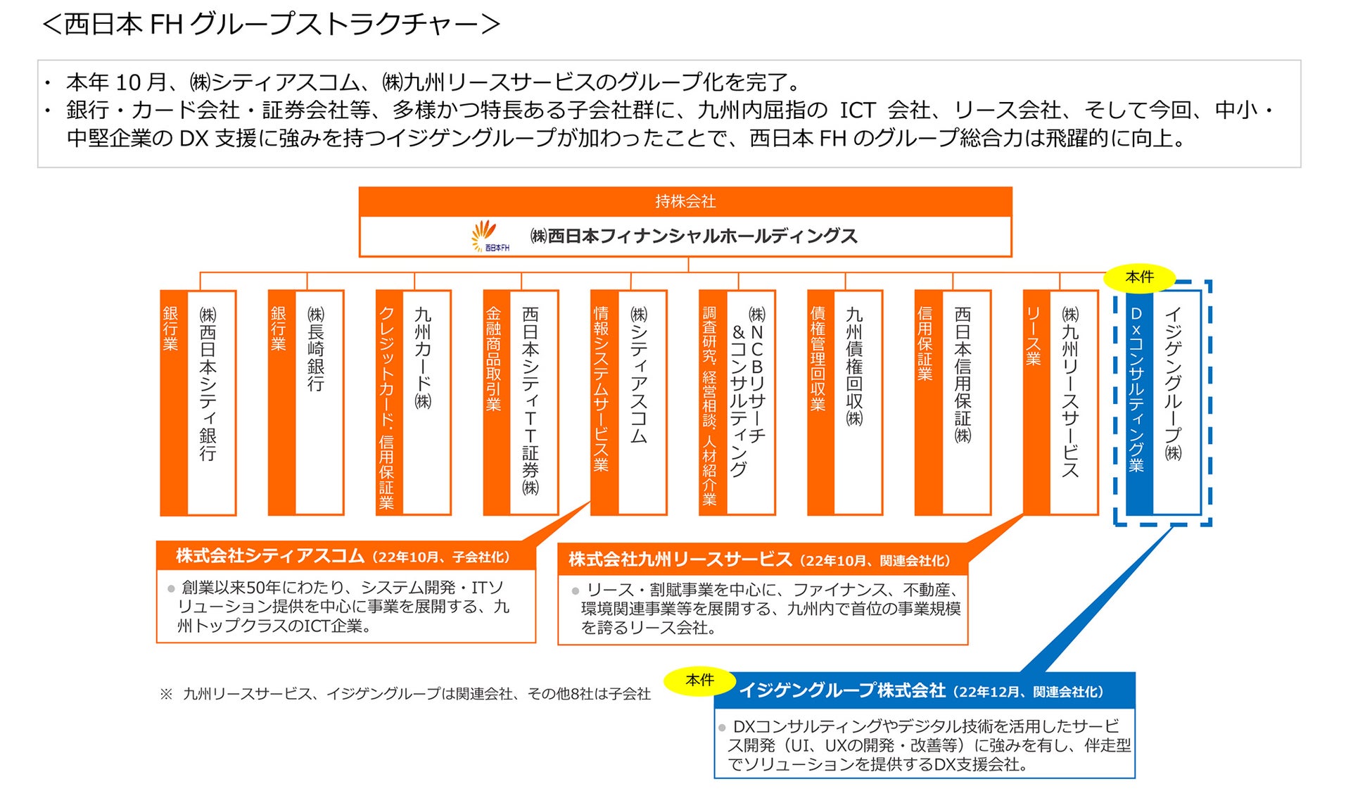 西日本フィナンシャルホールディングス(社長 村上 英之、以下「当社」)は、イジゲングループ株式会社(社長 鶴岡 英明、以下「イジゲングループ」)の株式を取得し、グループ会社としましたので、お知らせします。