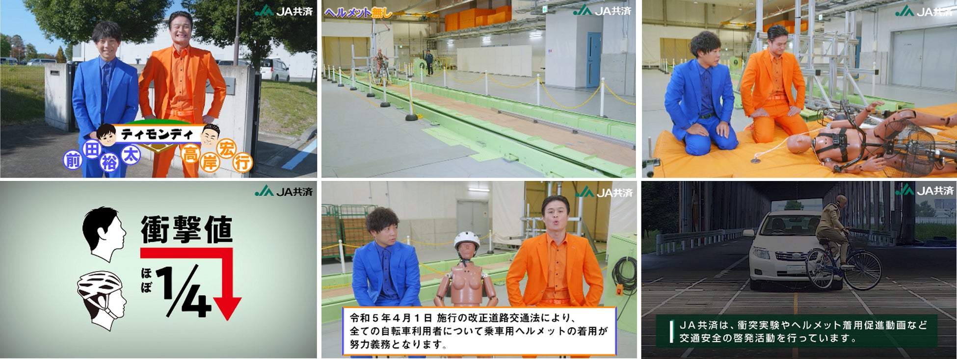 こうした背景を踏まえ、この度、ヘルメット着用の必要性を伝えるため「ヘルメット着用促進」篇~自転車乗るならヘルメット!~を公開します。ティモンディのお二人が自転車事故の衝撃試験装置を用いた自転車事故の衝撃実験を間近で体感し、ヘルメット着用有無による衝撃の差について レポートします。